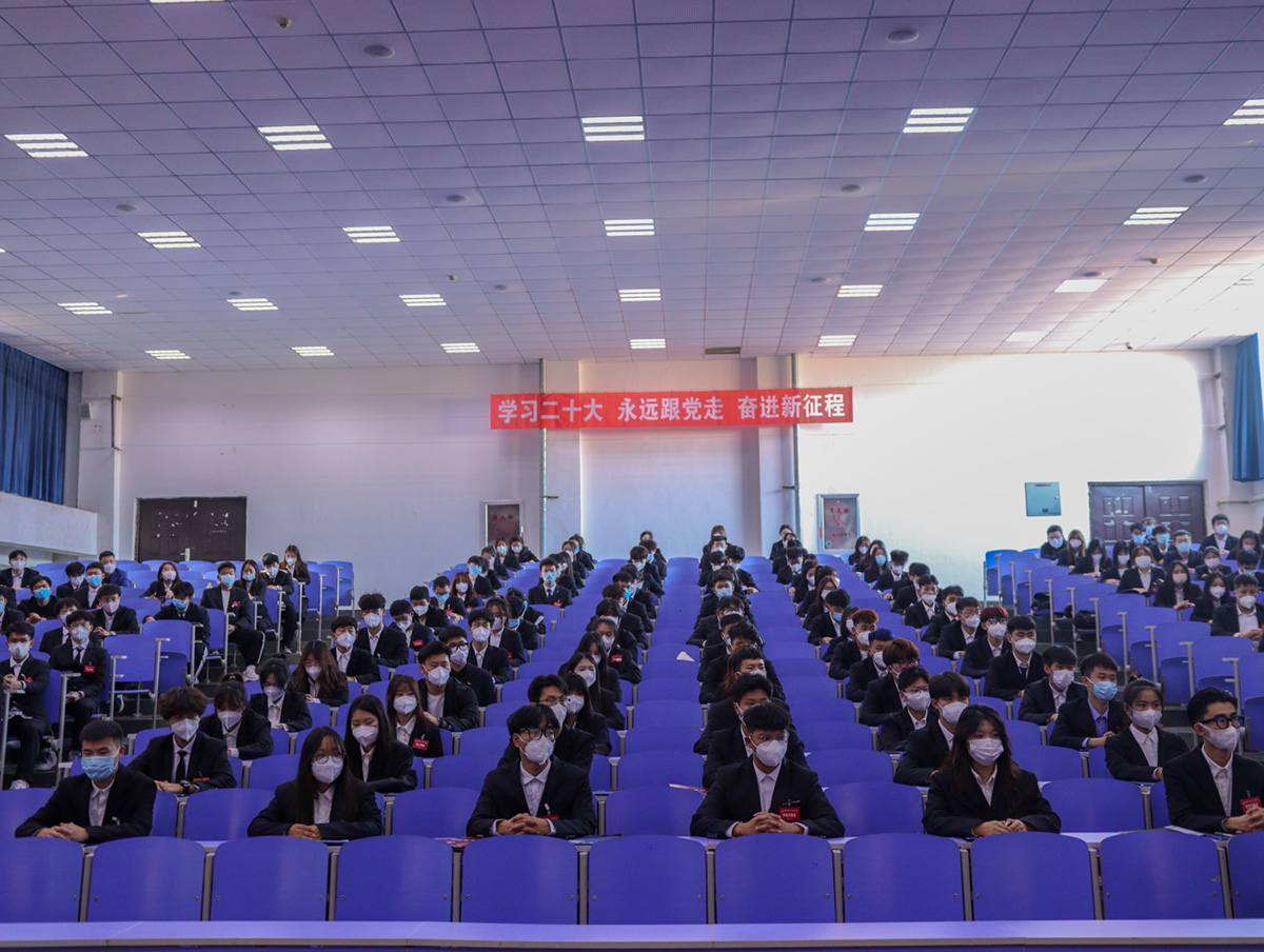 梁楚婷同学宣读大会倡议书,向全体沈科青年发出以下倡议:一、把准航向,坚定信念,以初心使命响应号召;二、解放思想,转变观念,以饱满热情领航未来;三、开拓视野,面向未来,以开拓创新砥砺芳华;四、脚踏实地,求真务实,以平实之心奉献社会。