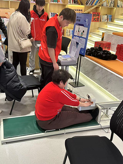 在本次监测工作中,同学们经过专业培训,分赴沈阳市各社区、学校、企事业单位,协助开展体质测试工作。志愿者们主要负责身高、体重、肺活量、握力、坐位体前屈、反应时、纵跳、俯卧撑(男)/仰卧起坐(女)等项目的测试,并耐心指导受试者规范完成动作,确保数据的准确性和科学性。