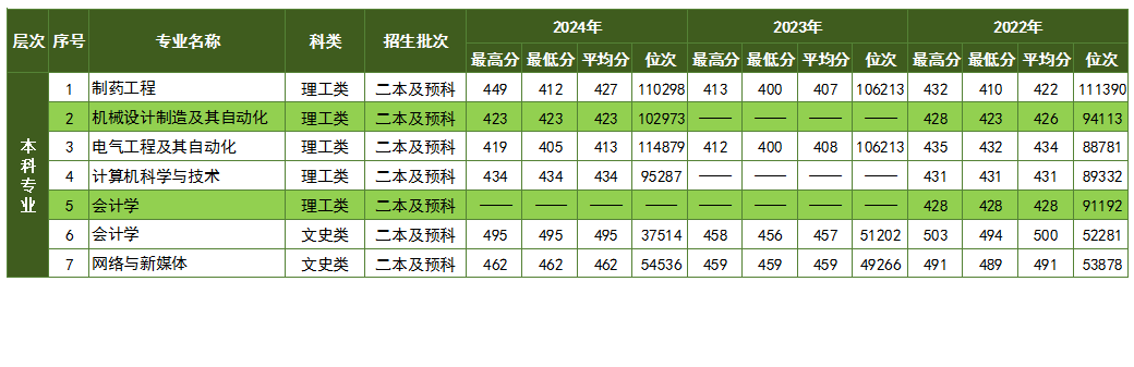 本科专业近三年云南省录取分数线专升本