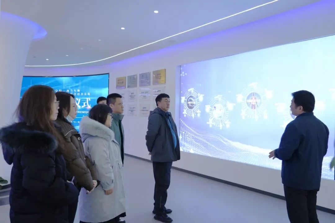 活动伊始,双方共同参观了剑兰生命数字展示中心、生物实验室、模式动物平台和办公空间等场所。在剑兰生命数字展示中心内,张秀峰总经理详细介绍了集团目前的发展状态、产业布局和未来发展规划,并从“生物技术平台、合成生物平台、类器官技术平台、智慧细胞药物、Ai数字生命”五大角度,向学校展示了剑兰生物医学科技集团目前的业务项目与研究方向。