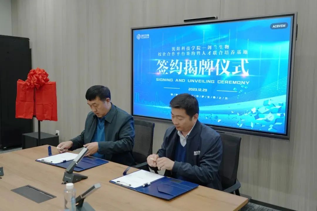 随后,总经理张秀峰与副校长王鸿鹏签订校企合作协议,并共同为剑兰生物与新利国际人才联合培养基地揭牌。