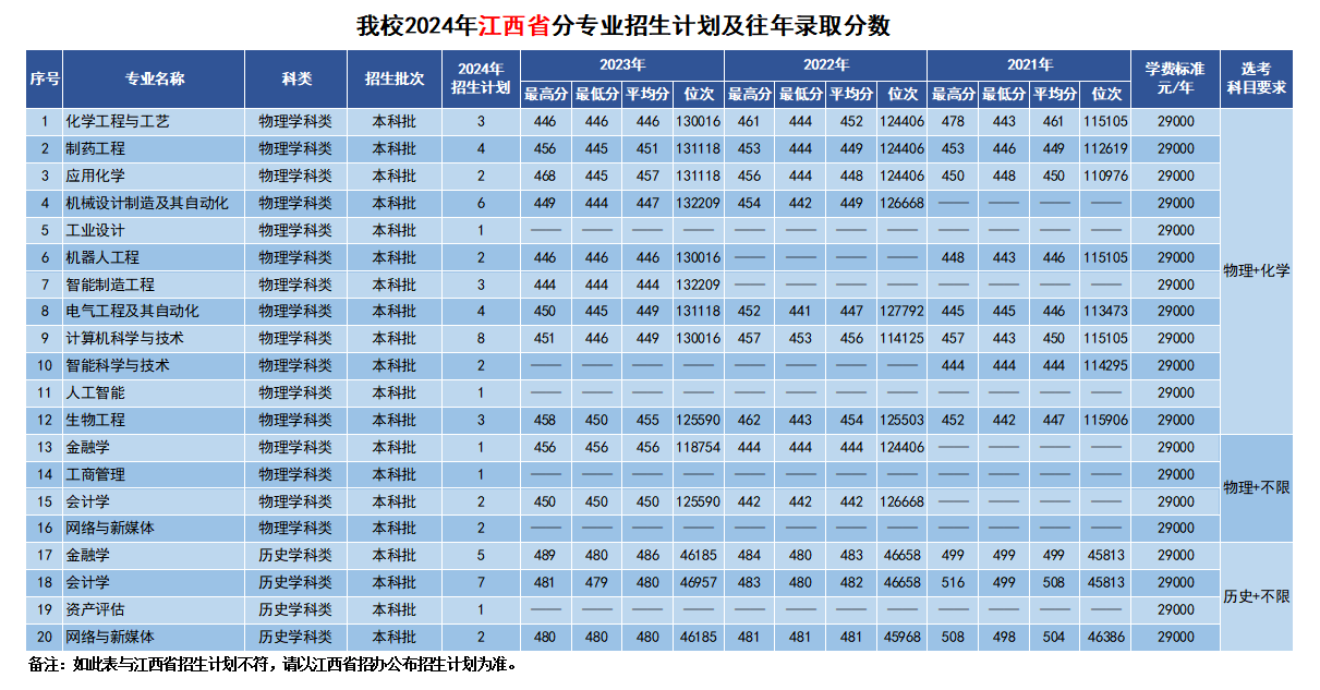新利国际2024年分省分专业招生计划及往年录取分数
